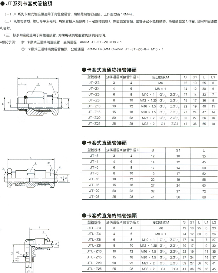 JT系列卡套式管接头